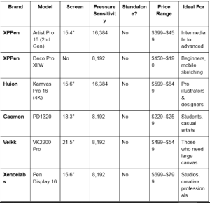 Comparison Table: Wacom Alternatives for 2025